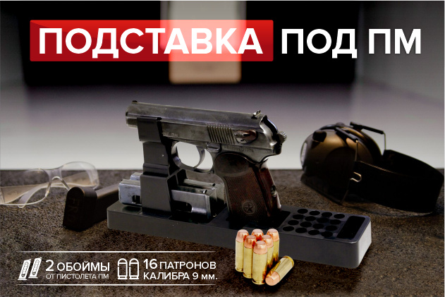 Благодаря этому вы можете использовать одну и ту же подставку даже при работе с несколькими типами оружия. Это особенно удобно для инструкторов, сотрудников частных охранных предприятий, а также любителей, которые имеют несколько моделей ПМ и ему подобных.