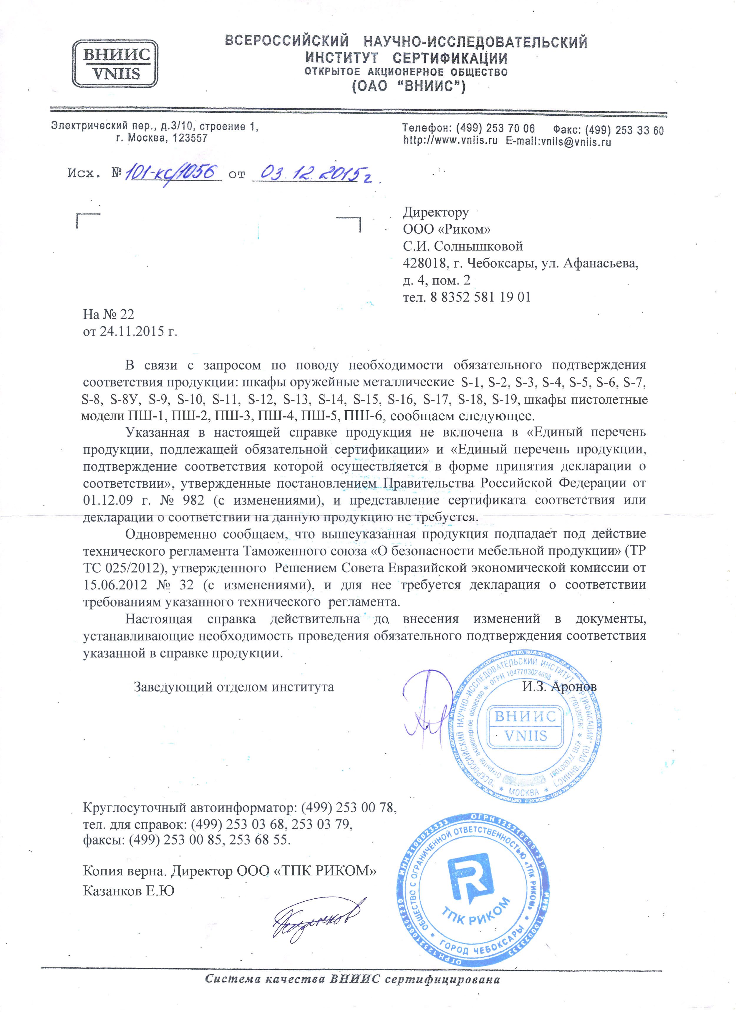Соответствует требованиям ст.59 Постановления правительства РФ №814 от 21 июля 1998 года «О мерах по регулированию гражданского и служебного оружия и патронов к нему на территории РФ» и приказом МВД РФ №288 от 12 апреля 1999 г. "О мерах по реализации Постановлением правительства РФ №814 от 21 июля 1998 г.". В статье 59 указанного постановления и статье 162 приказа МВД указано следующее: "Принадлежащие гражданам Российской Федерации оружие и патроны должны храниться по месту их жительства с соблюдением условий, обеспечивающих их сохранность, безопасность хранения и исключающих доступ к ним посторонних лиц, в запирающихся на замок (замки) сейфах, сейфовых шкафах или металлических шкафах для хранения оружия, ящиках из высокопрочных материалов либо в деревянных ящиках, обитых железом".