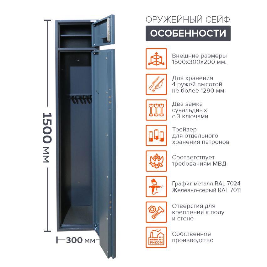 - Шкафы для оружия на 1-4 ружья. Сталь 1,4 мм. Отделение для хранения патронов.