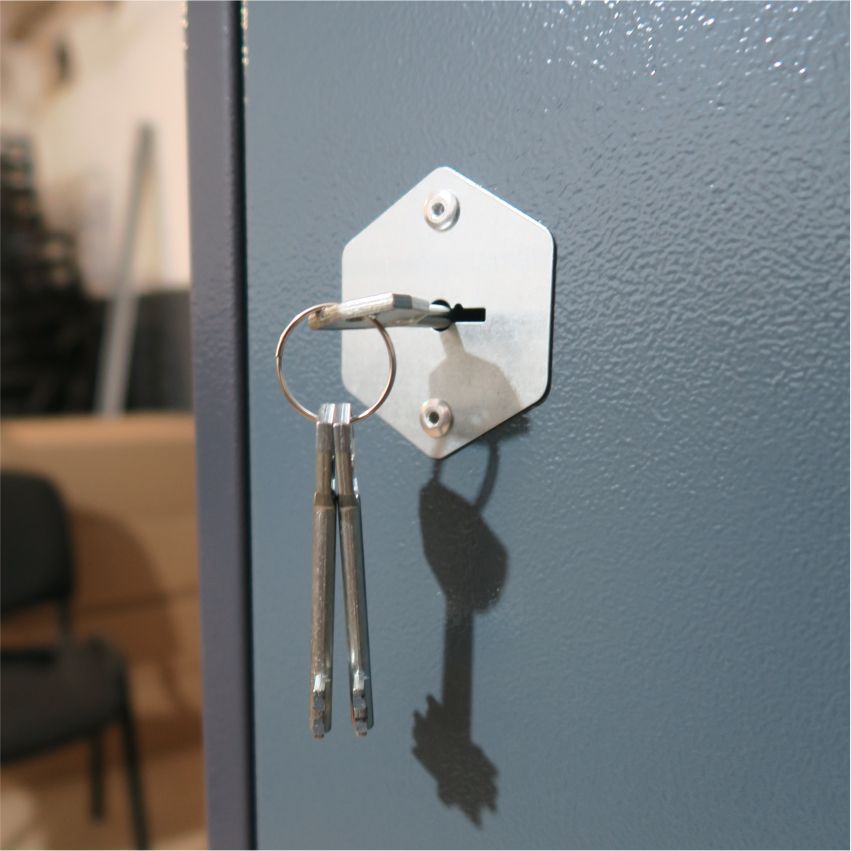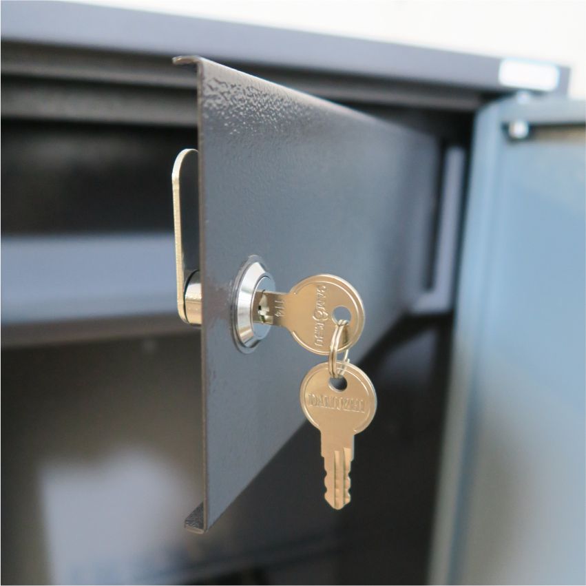 - На дверце шкафа установлены 2 сувальдных замка. На трейзере 1 почтовый замок.